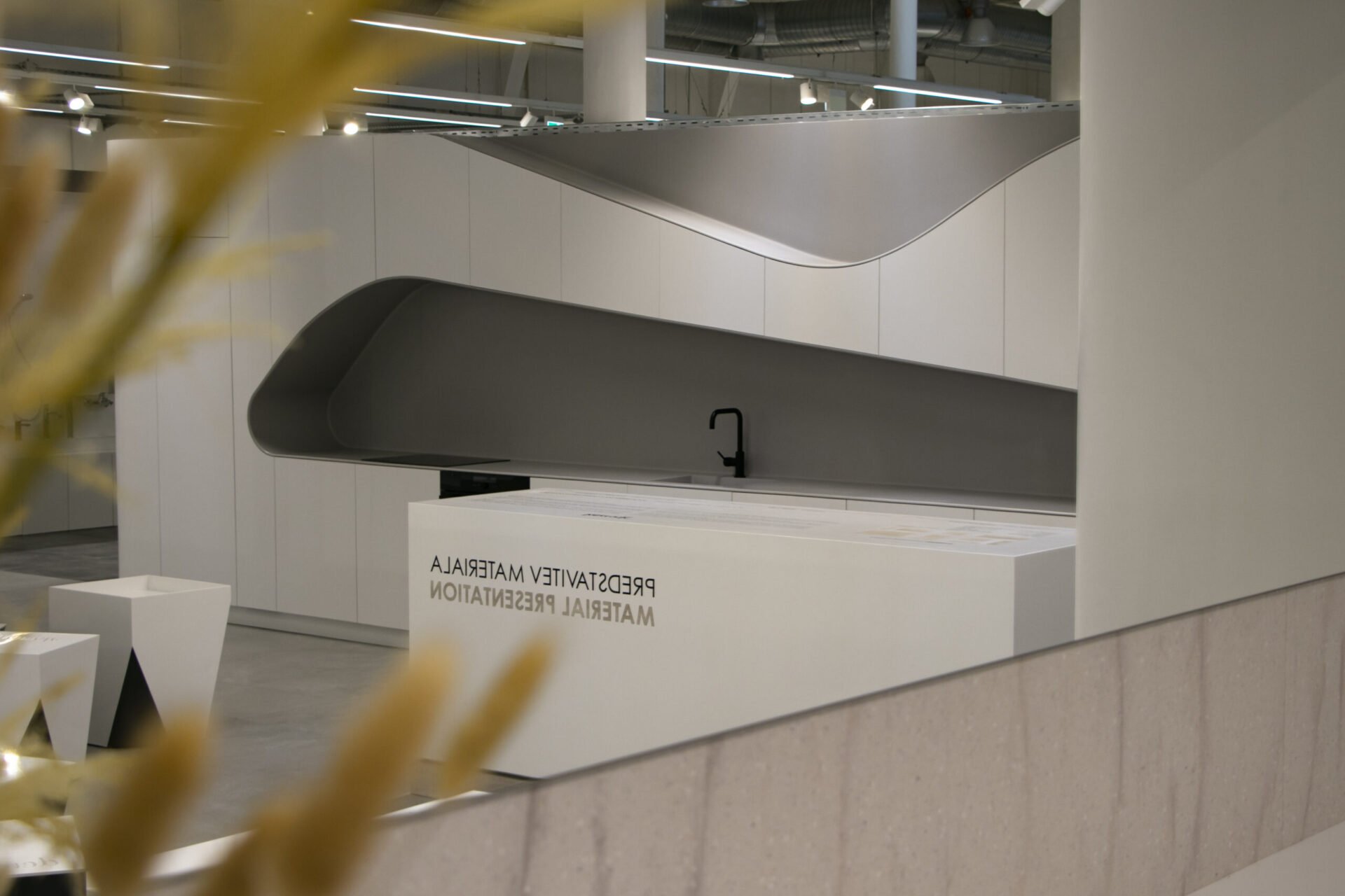 Minimalism of smooth, porous and homogeneous material. Creates an atmosphere and gives a distinct character to the look.